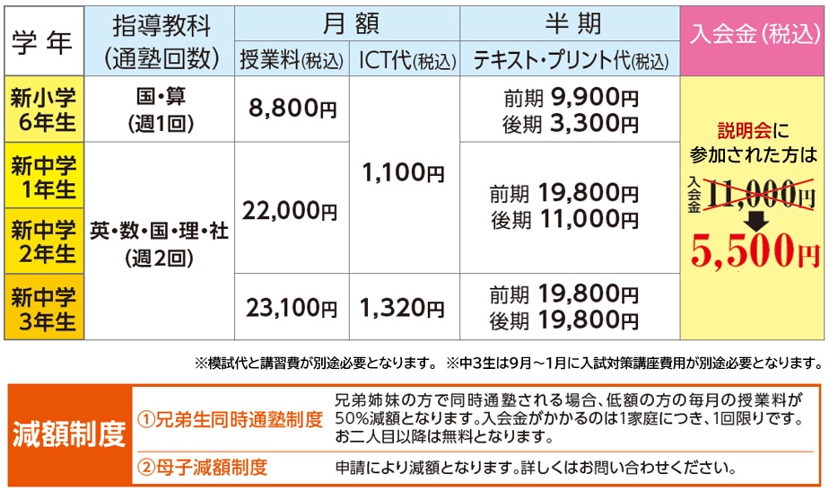 ※新小6は半田校のみで開講、 乙川校は新中2・新中3のみの開講となります。