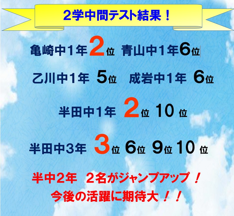 定期テスト結果速報