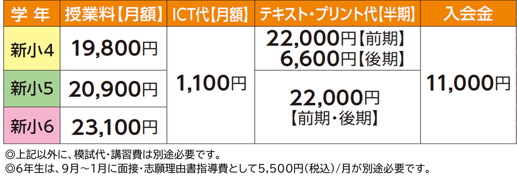 ※テキスト・プリント代3,300円(税込)と小学ぜんけん模試代2,500円(税別)が別途必要です。