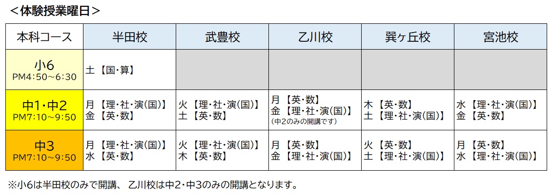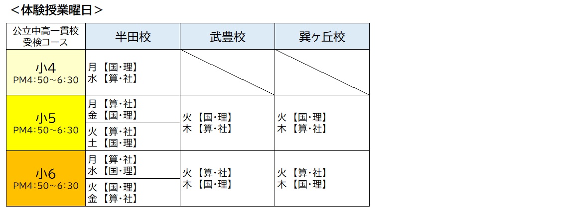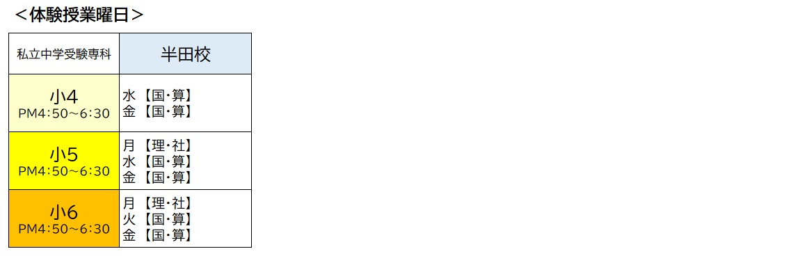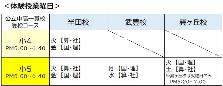 ※小4は半田校のみの開講です。