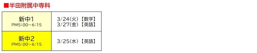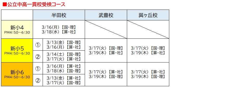 ※新小4は半田校のみの開講です。