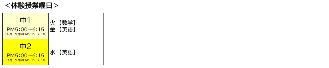 ※上記曜日より、一日参加していただけます。授業参加前に予習が必要となりますので、参加していただく日時は、お申込みの翌週以降のご案内となります。詳細な日程は、受付後に担当者よりご連絡いたします。